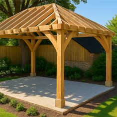 Posts, beams and other QP1 grade oak sections available from stock or bespoke machined sizes to order cut and supplied in France. Porch kits pre-machined with CNC'd mortise and tenon joints made to order.